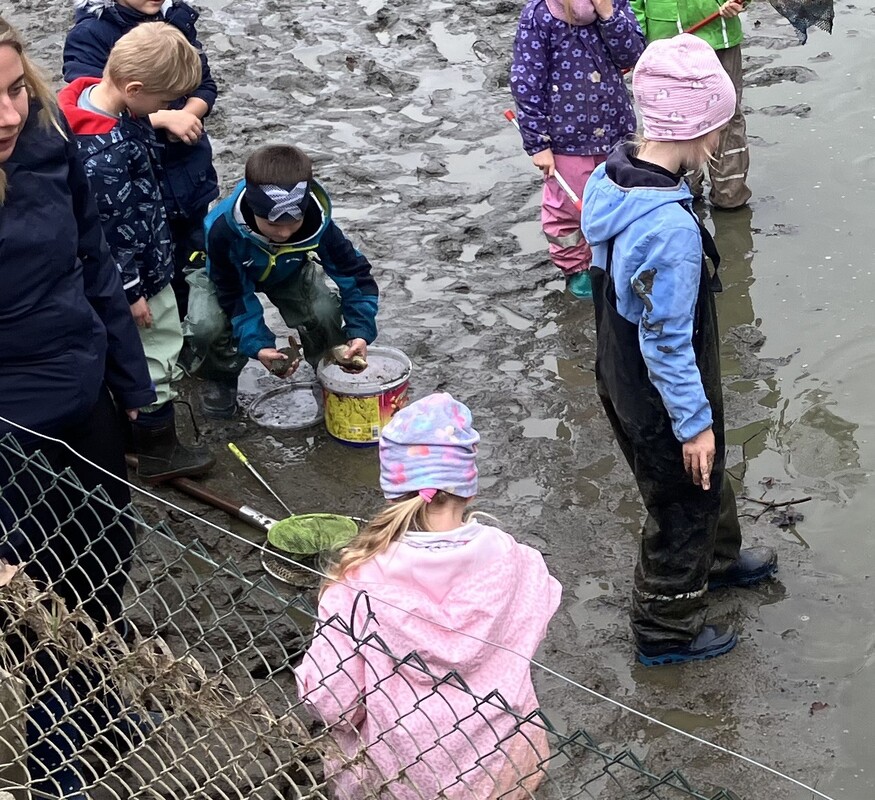 Doch nicht nur die Fische weckten Neugier: Auch Frösche, Schneckenhäuser und andere Wasserbewohner sorgten für spannende Entdeckungen. Matsch, Wasser und nasse Hosen wurden dabei schnell zur Nebensache – der Spaß und das gemeinsame Erlebnis standen klar im Vordergrund. Die leuchtenden Augen und lachenden Gesichter der Kinder sprachen für sich.