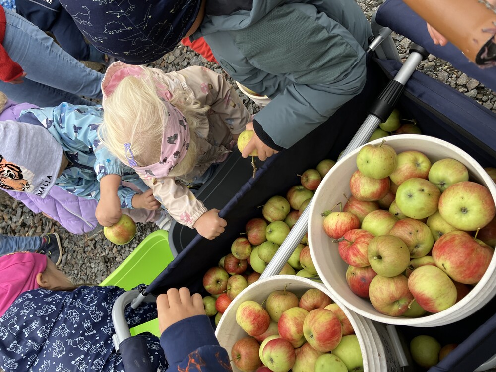 Auch die Eltern beteiligten sich rege und brachten Apfelspenden in den Kiga.